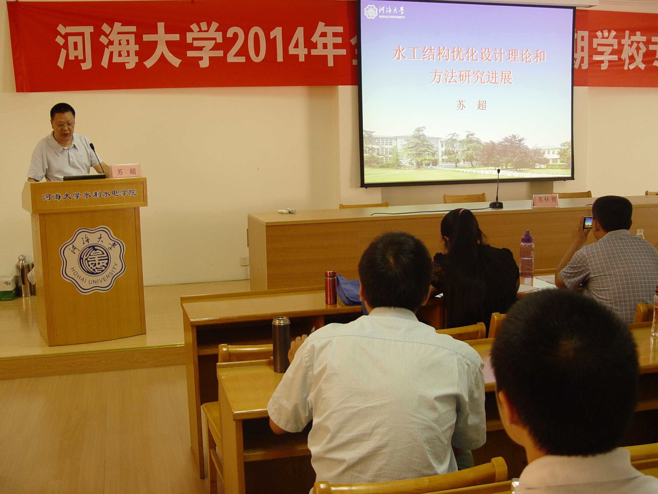 7月30日上午,hg8868体育官网水工结构研究所副所长苏超教授为各位学员作了题为《水工结构优化设计理论和方法研究进展》的报告,报告会由hg8868体育官网博士生导师苏怀智教授主持。