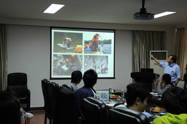 邵孝侯教授首先代表hg8868体育官网向远道而来的日本国立岐阜大学12位师生表示热烈欢迎,并向各位简要介绍了hg8868体育官网hg8868体育官网及南方地区高效灌排与农业水土环境教育部重点实验室概况,然后邵教授前重讲述了EM技术在水环境净化中的作用,我院硕士研究生尹超对“微生物纳米球净化污水及水产养殖塘底泥”的相关研究作了介绍。日本国立岐阜大学李教授介绍了岐阜大学概况及所在科研团队的有关情况,并做了流域水环境方面的学术报告。双方师生针对水土环境修复和保护学术问题进行深入的交流探讨,李教授表示了进一步和hg8868体育官网开展交流合作和培养学生的意向。