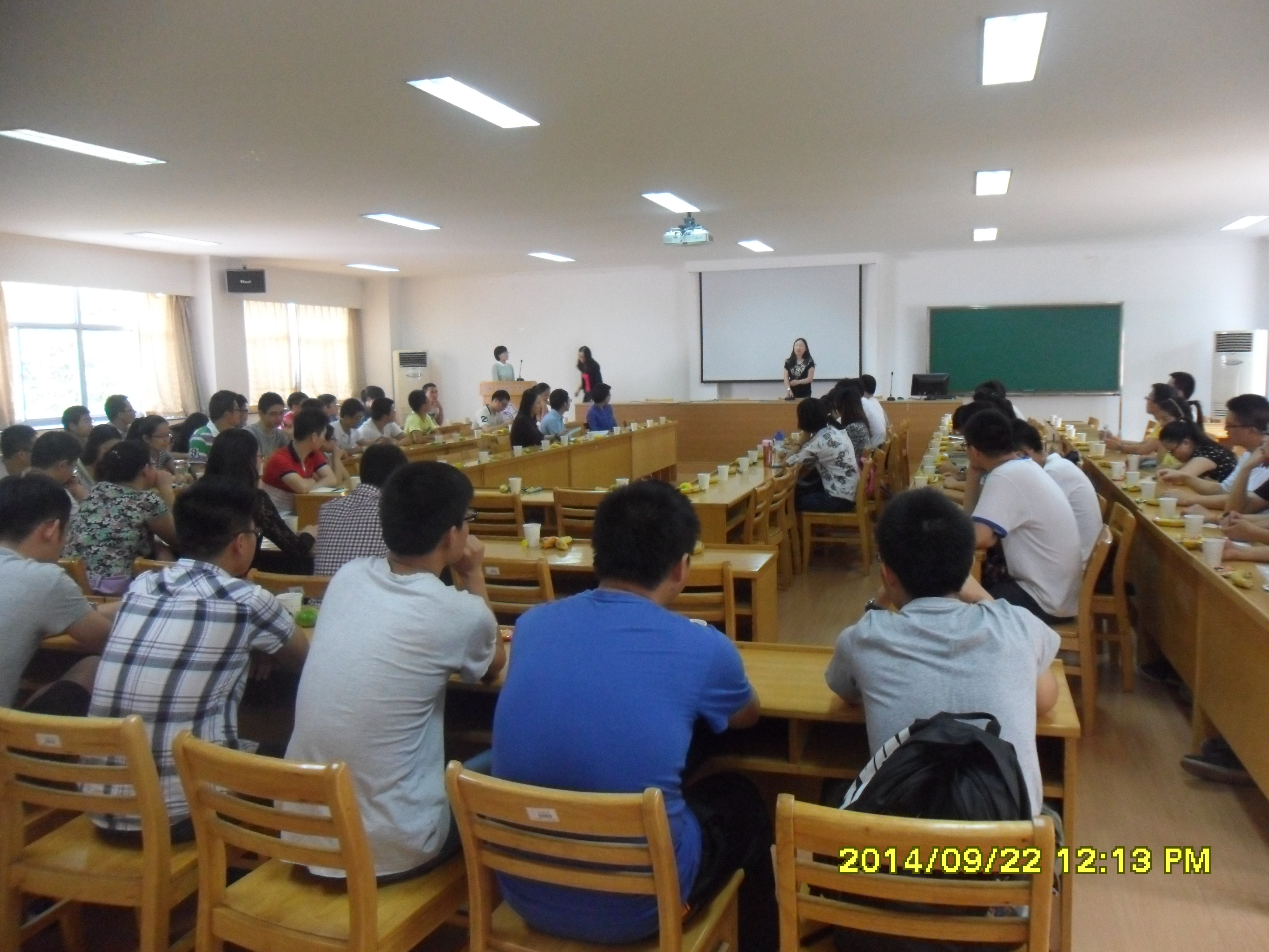 在胡老师的总结发言后,hg8868体育官网研究生会主席宋锦焘同学、研究生科协主席钟黎雨同学对2014年新生表示了热烈的欢迎,也对2014新学期的工作进行了说明。研会即将举办的拔河比赛、“新生杯”篮球赛、掼蛋大赛,道德讲堂以及青年志愿者活动等等,形式多样精彩纷呈,敬请同学们的期待。科协即将举办的本硕博活动、节水活动、科普水利知识竞赛、达峰论坛系列讲座等等,更是以服务同学为宗旨,让更多同学参与到学术交流中。