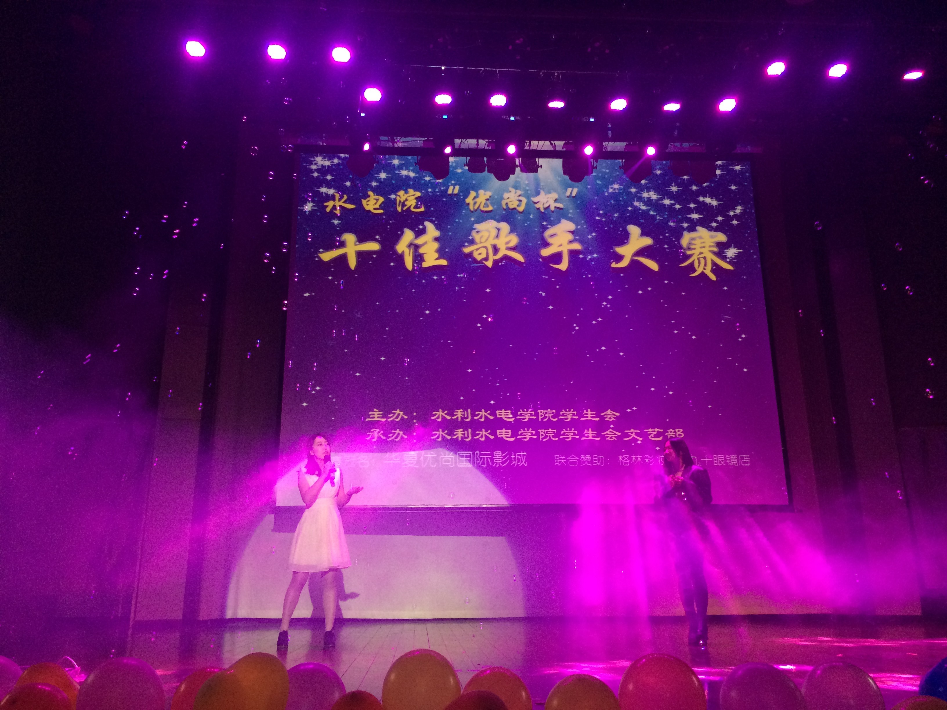 11月16日晚,水电院2014年十佳歌手大赛在博学楼报告厅成功举办。博学楼报告厅座无虚席,气氛热情洋溢。选手们的深情演唱掀起了观众们此起彼伏的尖叫声,一首首耳熟能详的歌曲一一唱来,满厅流光溢彩。比赛曲目既有经典,又不乏流行元素,甚至有的参赛选手还对歌曲进行了全新演绎,使人耳目一新。经过激烈的角逐,叶颜绮、恩尼提马克和赵思远分获冠亚季军。