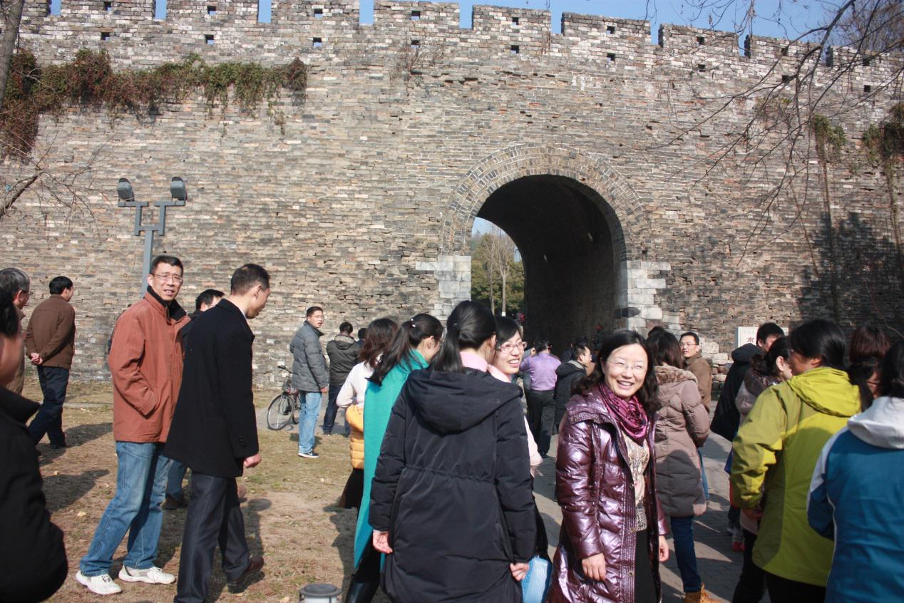 学院顾冲时院长、张展羽书记也加入到行走的行列,和大家边走边聊,不一会就来到石头城下。大家合影留念留念,记录下2014年年底hg8868体育官网教工们在石头城、阳光下灿烂的笑容。