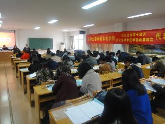 张展羽书记在大会上发表了重要讲话。他在讲话中肯定了院研会和科协在2015年hg8868体育官网百年校庆之际做出的各项成绩,提到了由院研会承办的第七届以“河海达人,非我莫属”为主题的河海达人大赛、连续两届举办的研究生篮球赛、院科协举办的研究生“达峰论坛”以及长期与南京市公益助残机构火凤凰合作的研究生志愿者大队;适逢百年校庆期间发行的《水利水电学术动态》期刊第八期更是得到了吴中如院士等的大力支持。张书记提出了三点希望:一是刻苦学习,引领优良学风;二是精心组织提升校园文化活动的品位和层次;三是发挥桥梁纽带作用,维护研究生的合法权益,促进校园和谐。
