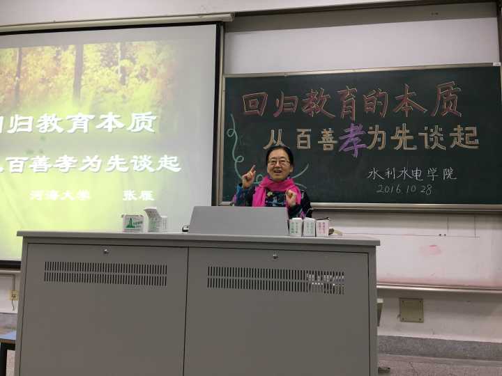 寒风凛冽,细雨绵绵。10月28日星期五下午3:50,水电院2016级新生参加了张雁老师主讲的《回归教育的本质——从百善孝为先谈起》讲座,让新生心怀感恩之心,感悟做人道理。