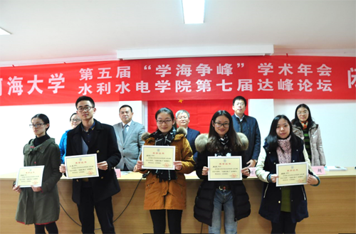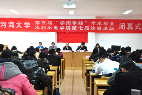 11月24日,hg8868体育官网第五届“学海争峰”学术年会暨水电院第七届“达峰论坛”在水电馆401隆重闭幕。共青团hg8868体育官网委员会副书记陈伟刚老师,水电院顾冲时院长,陈毓陵书记,戴玉珍副书记,《水利水电科技进展》编辑部主任骆超老师等出席了闭幕式。