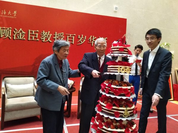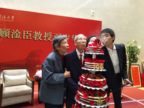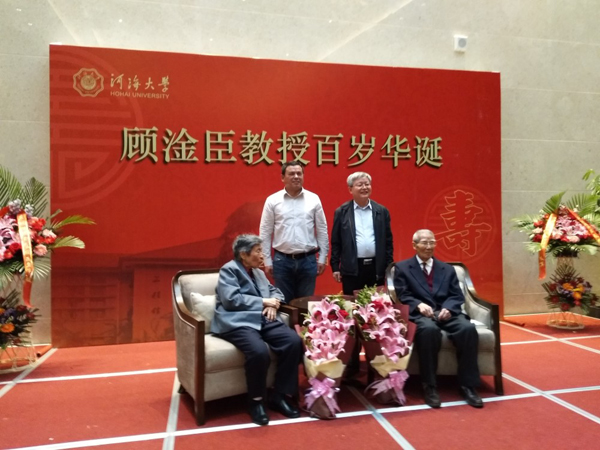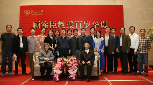 4月18日顾淦臣教授百年华诞在hg8868体育官网国际交流中心举行,水工结构研究所的老师们参加了庆典仪式并和顾淦臣夫妇合影。(供稿人:陶艳芝)