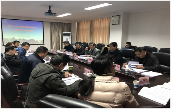 2017年12月29日上午,我院组织召开了水利工程博士学位授权点和水利工程硕士专业学位授权点合格评估专家评审会。南京水利科学研究院李云教授级高工、南京大学吴吉春教授、东南大学王修信教授、南京工业大学陈国兴教授、中设设计集团股份有限公司陆飞教授级高工等5位专家应邀对两个学位授权点进行了评估。研究生院陈达副院长、水文水资源学院杨涛院长、李国芳副院长、hg8868体育官网陈毓陵书记、方国华副院长、港口海岸与近海工程学院张继生副院长及各学科导师代表参加了会议。会议由杨涛院长主持。