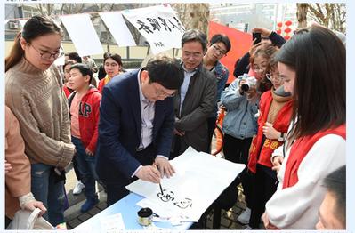 当天,hg8868体育官网校党委书记唐洪武、校党委副书记郭继超一行也来到西康路一条街活动现场,对我院的服务内容及活动种类进行深入了解,并与志愿者们进行亲切的交流。期间,唐洪武书记为我院学子题写了“向雷锋同志学习,奉献他人,提升自己”这十五个大字,告诫我们作为一名大学生应该有所觉悟,激励我们用自己的知识去奉献社会。