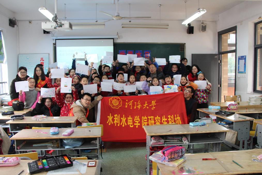 2018年3月22日,为配合hg8868体育官网2018年“世界水日”、“中国水周”相关主题活动,水电院研究生科协与南京市供水节水管理处一起,走进五老村小学马府街分校,开展了“大手拉小手,节水进校园”水知识普及教育活动,向马府街小学的小朋友们普及水知识,并提醒全校师生关注身边的“水问题”。