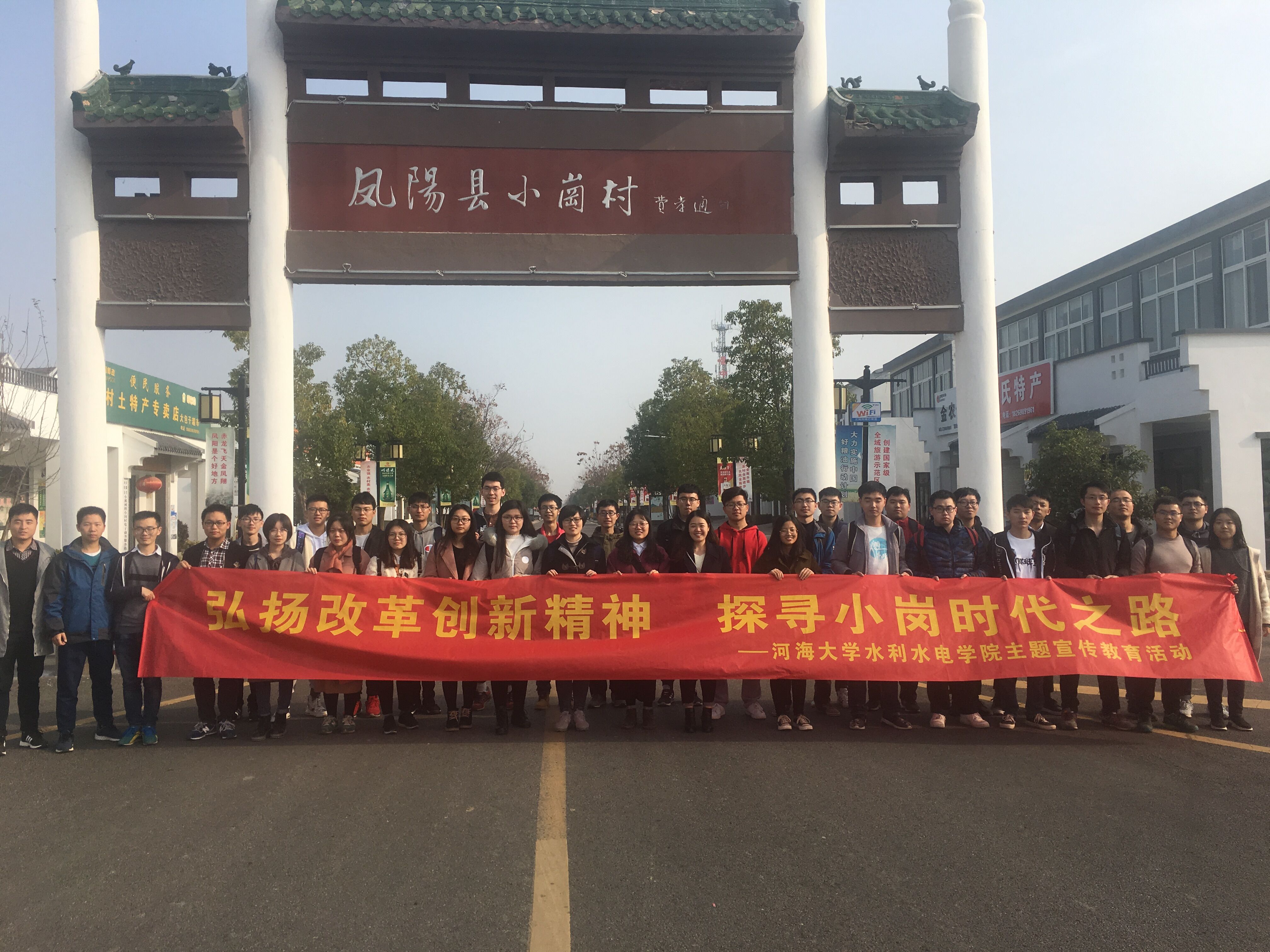 12月1日上午,我院举办了以“弘扬改革创新精神,探寻小岗时代之路”为主题的庆祝改革开放40周年主题宣传教育活动,学生党员和学生骨干在辅导员笪步源、曲永胜老师的带领下赴中国农村改革发源地小岗村寻访体验。