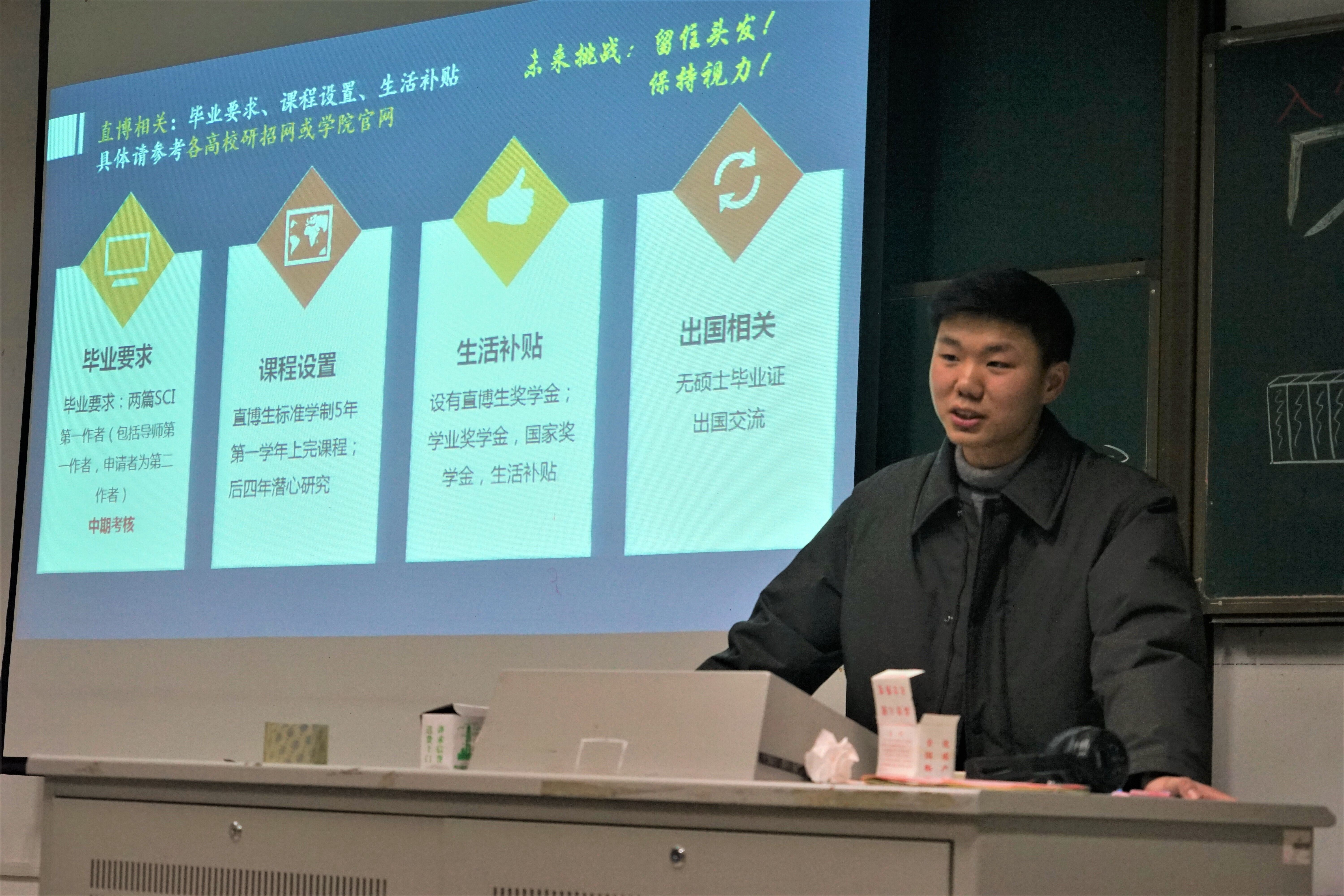 为贯彻学校教育教学工作会议精神,响应学院“强化学生规范、促进学业创优”学风建设研讨会中心思想,加强大学生涯规划教育,帮助新生强化专业归属感,激发学习动力,助力学业发展,我院于12月5日面向2018级本科新生开展水电院保研经验交流会。