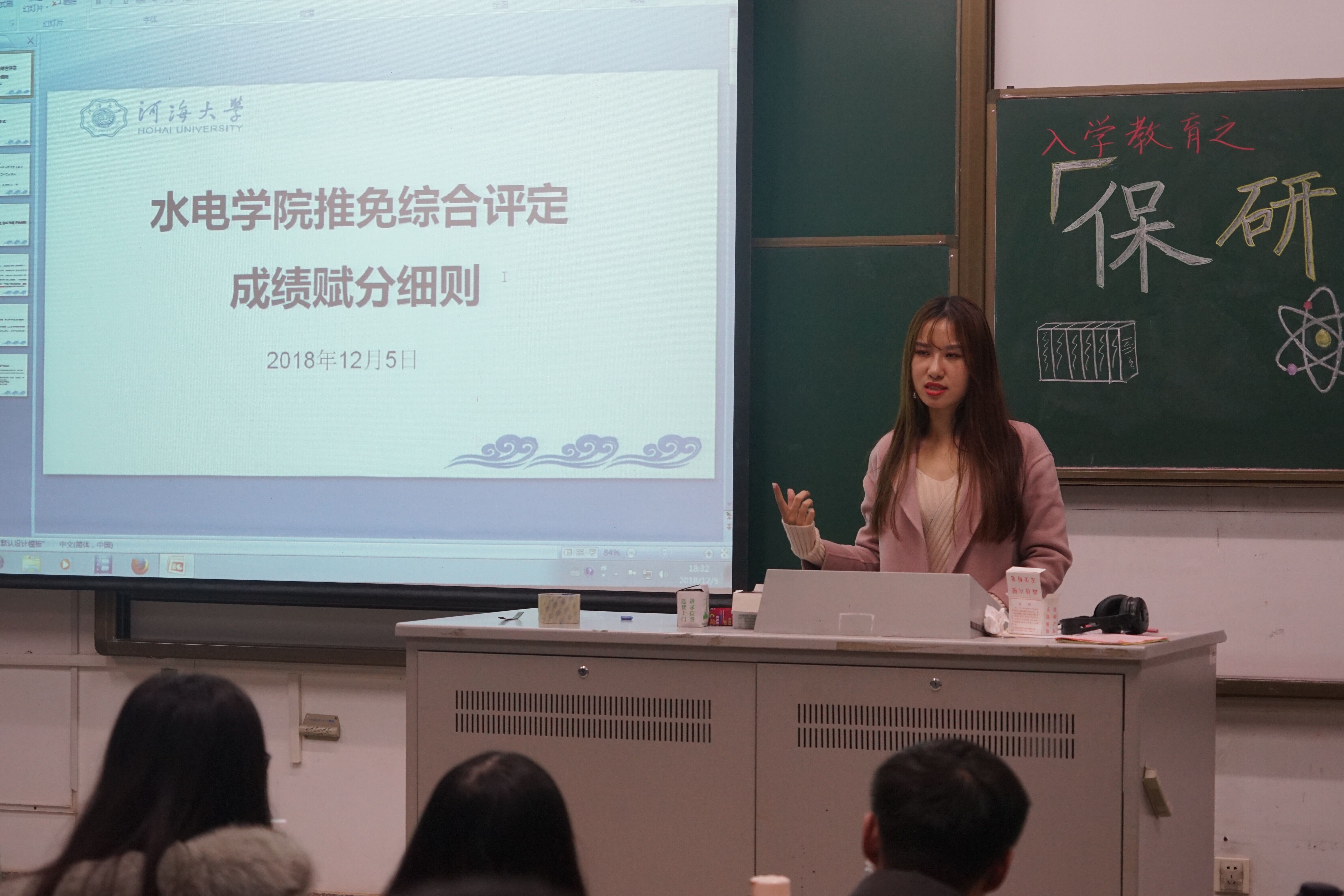 水电院“助力保研,生涯启航”交流会邀请到18级本科生辅导员姜帆老师及15级优秀保研学生代表晏自立、郑雅莲和金子又一同参加。首先,姜帆老师向18级本科新生介绍了我院《推免综合评定成绩赋分细则》,由点及面、深入浅出地解释了各项评定所占比重、评判方式及规则,强调了学习成绩与社会活动对于推免保研的重要性。在此之后,15级优秀学长姐依次上台讲述了自己的励志故事和保研经历,通过个人折射群体,帮助18级新生明确了人生方向,介绍了各门课程的学习方法,还悉心地解答了同学们许多正在面临或即将面临的问题。