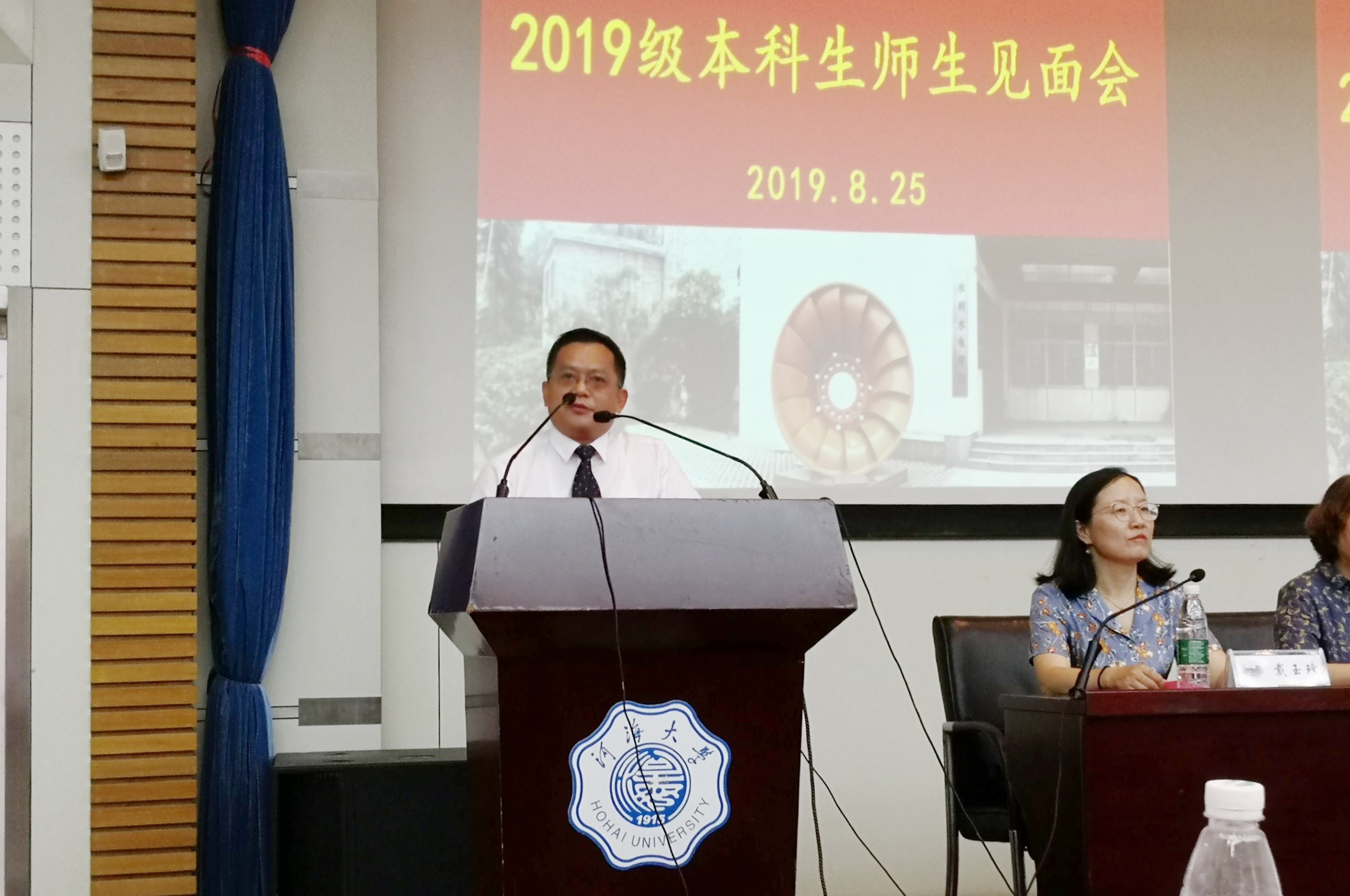 8月25日,hg8868体育官网2019级新生师生见面会在江宁会议中心隆重举行。学院顾冲时院长、任旭华书记、方国华副院长、沈振中副院长、张继勋副院长、戴玉珍副书记,相关系所负责人、教学秘书、2019级班导师、辅导员与2019级全体新生参加会议。会议由戴玉珍副书记主持。