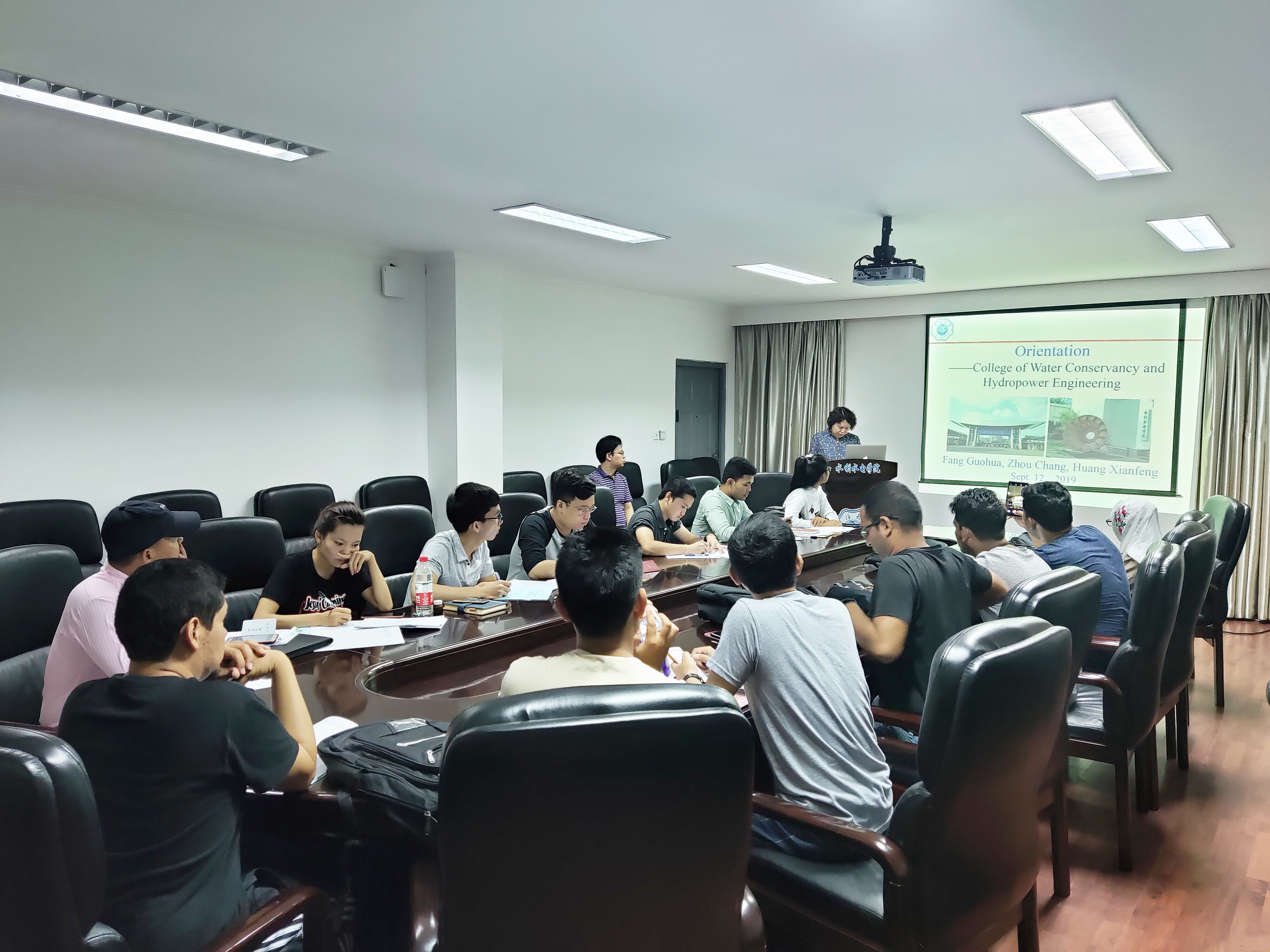 9月12日上午,hg8868体育官网在水电馆420会议室举行了2019级留学研究生新生入学教育会。学院副院长方国华教授首先致辞,向各位留学生进入hg8868体育官网开始研究生阶段的学习表示祝贺和欢迎,希望留学生新同学热爱本专业,加强专业知识学习,逐渐从知识的积累者变成知识的运用者和创造者。黄显峰副教授从学院的学科概况、人才培养、国际合作等几方面为留学生们做了详尽的介绍。研究生教学秘书周昶老师就同学们关心的课程学习、导师安排等事宜做了解答。2019级留学研究生入学教育会圆满结束。
