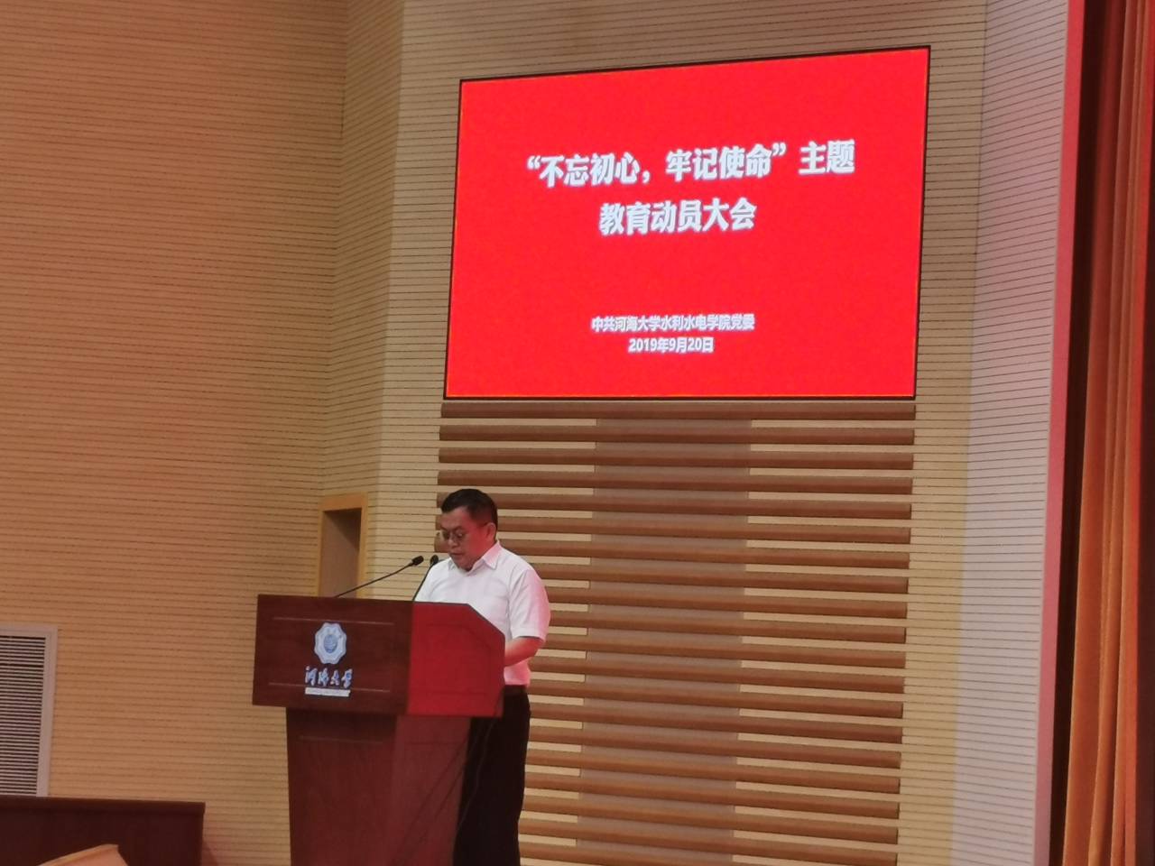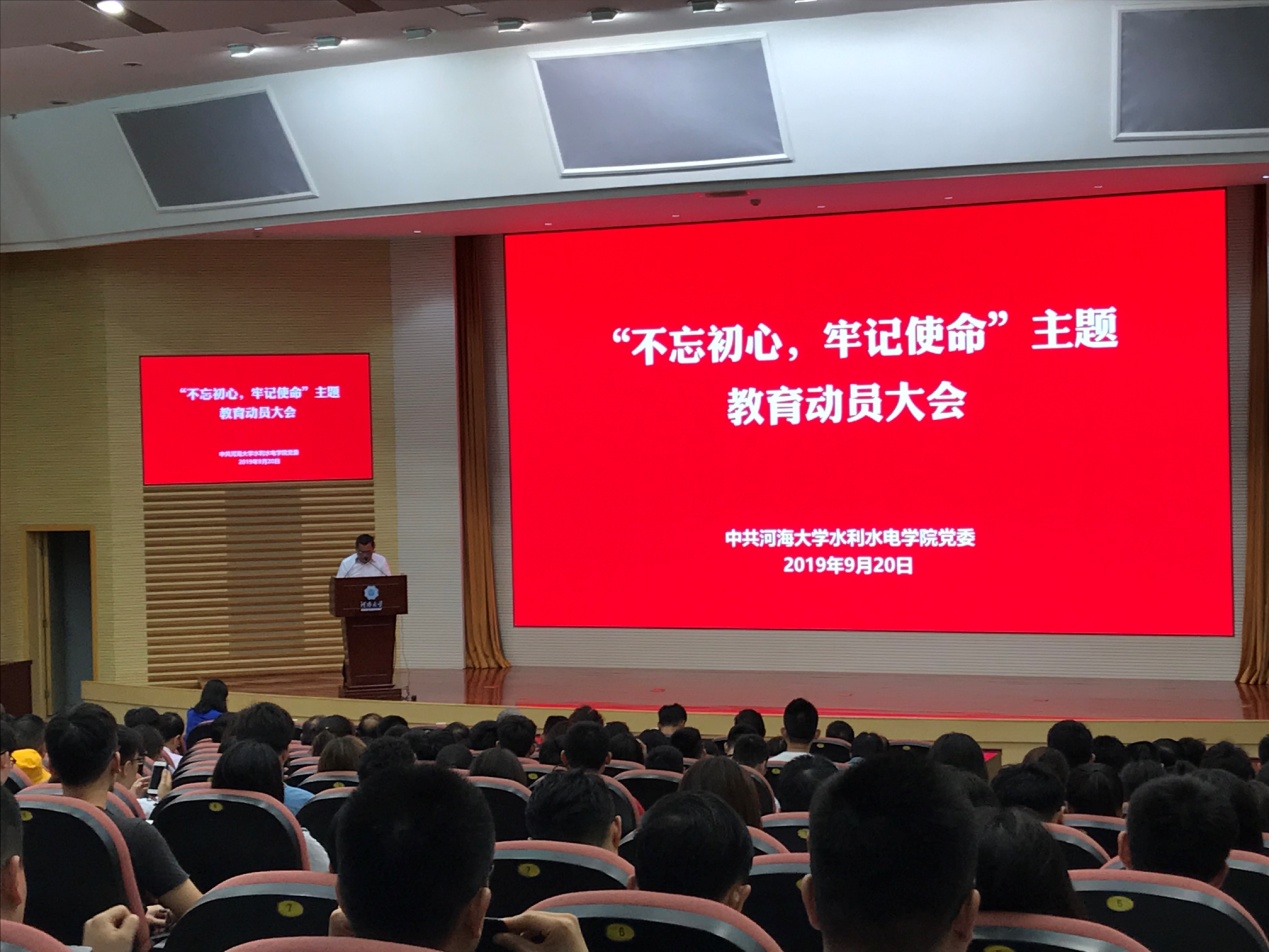 9月20日,hg8868体育官网召开“不忘初心、牢记使命”主题教育动员大会,全面部署学院主题教育各项工作。院党委书记任旭华作动员讲话,党委副书记戴玉珍主持会议。院领导班子成员和全院师生党员参加了动员大会。