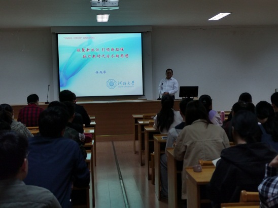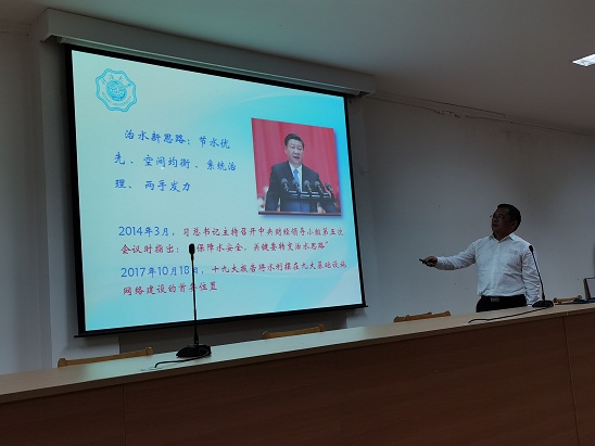 10月23日晚,学院党委书记任旭华给全院师生党员代表上了题为《凝聚新共识,引领新征程,践行新时代治水新思想》的党课。