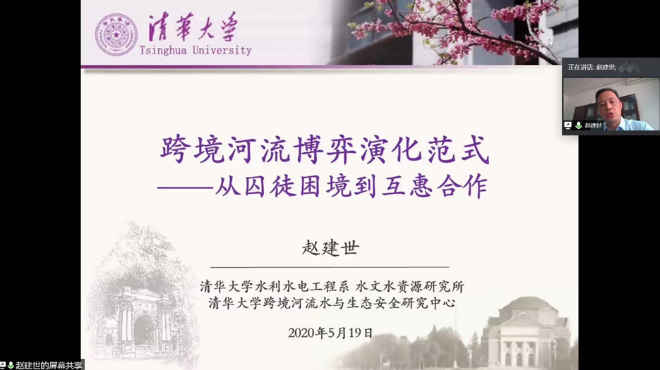 5月19日下午,hg8868体育官网基于腾讯会议,邀请清华大学赵建世教授作了题为“跨境河流博弈演化范式—从囚徒困境到合作共赢”的学术报告。校内外专家和学生约170人参加了此次报告会,辛沛教授主持了报告会。