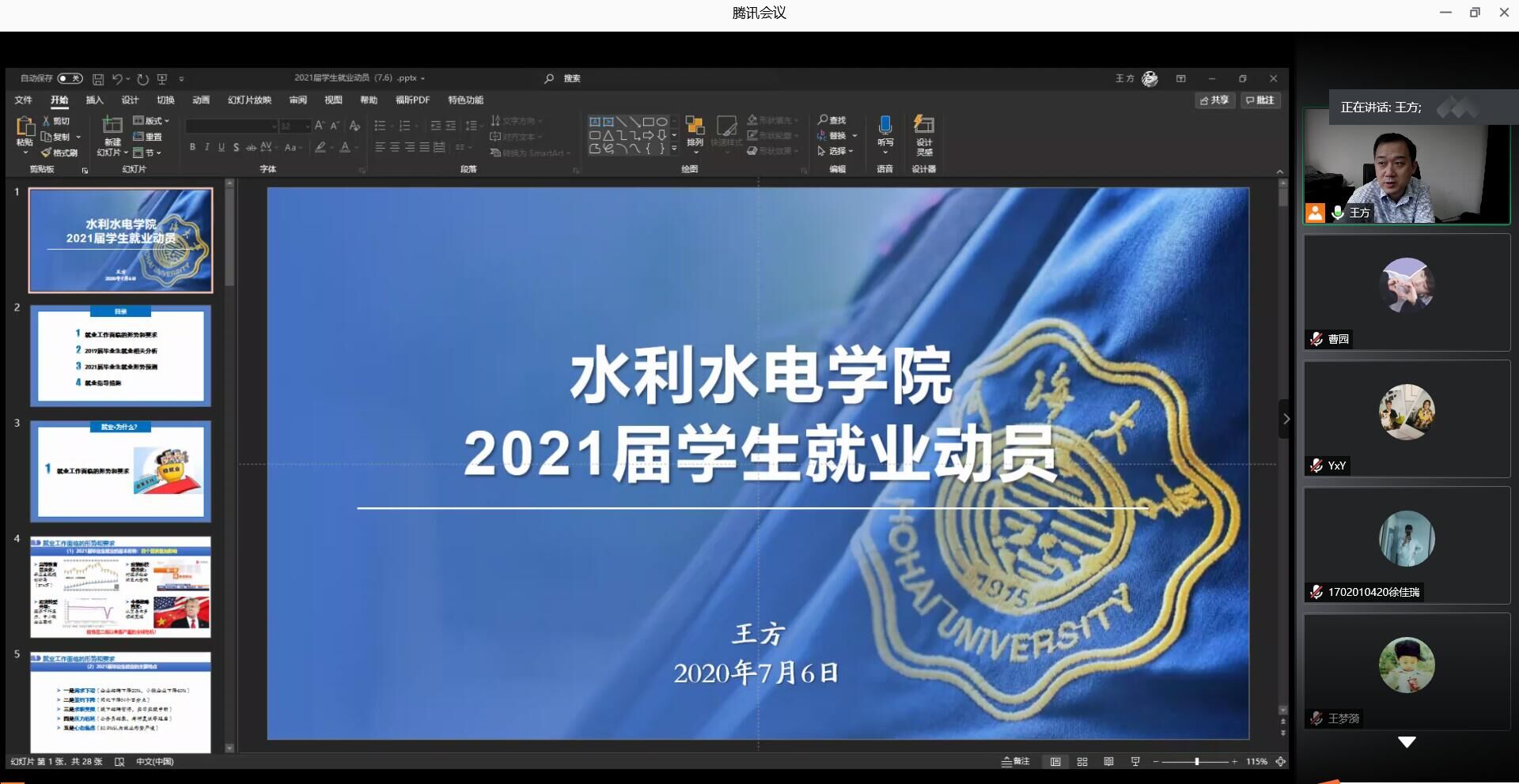 7月6日,我院举办2021届毕业生就业动员大会。学院副院长方国华、党委副书记王方、2021届全体毕业生出席会议。会议由王方副书记主持。