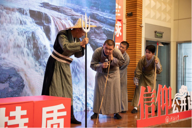 同学们以大禹三过家门而不入为蓝本,用话剧形式演绎大禹治水的艰辛过程,彰显民为邦本,公而忘私,创新求知的大禹精神。四位同学为我们带来“江河安澜——水利人在路上”诗朗诵表演。他们真挚的誓言中蕴含的是对河海的热爱,对hg8868体育官网的热爱以及将自己奉献给水利事业的坚定信念与决心。