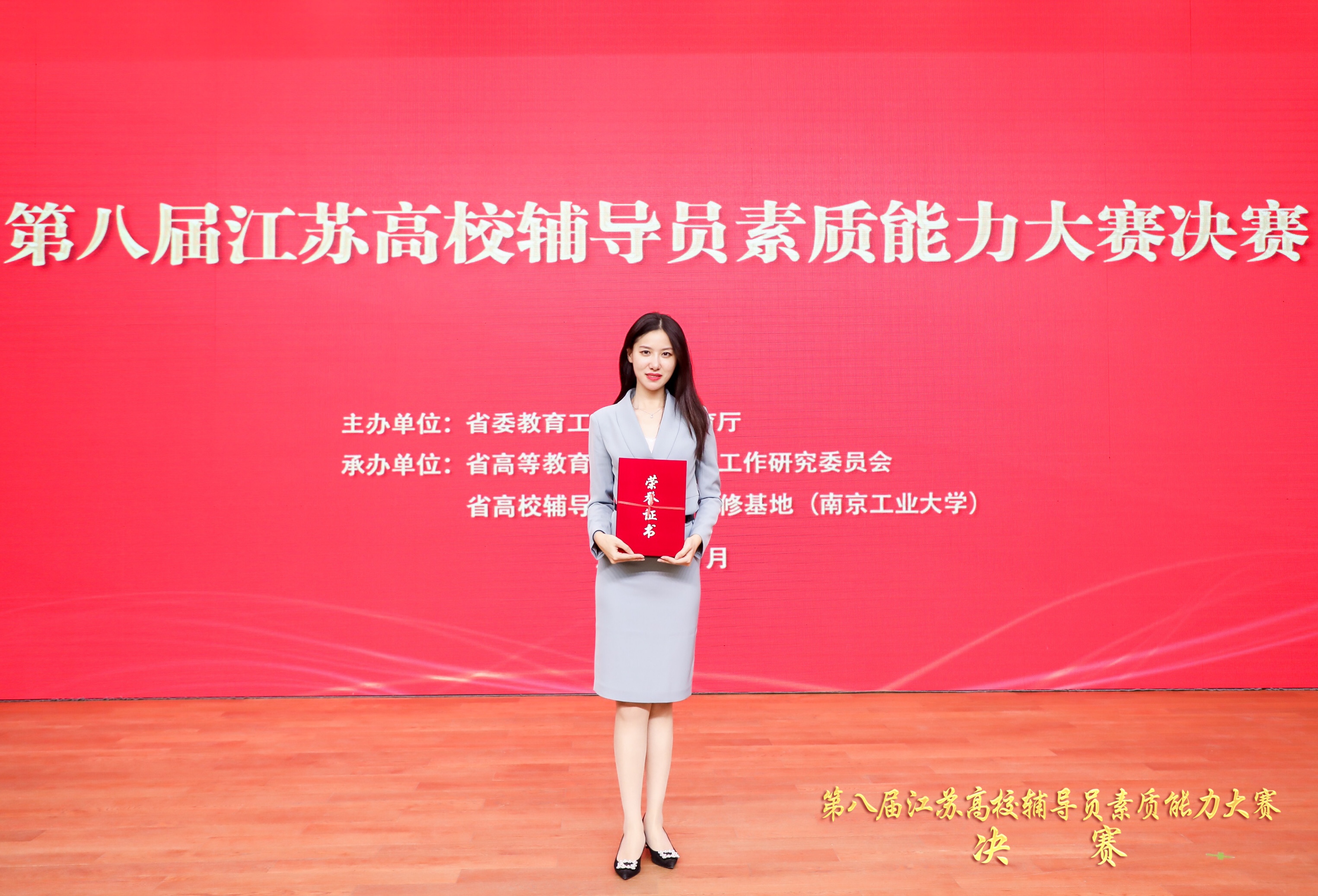 11月27日至28日,第八届江苏高校辅导员素质能力大赛决赛在南京工业大学成功举办。我院2018级辅导员姜帆老师,与来自全省40所高校的优秀辅导员同台竞技、尽展风华,以总分第二的好成绩荣获一等奖!