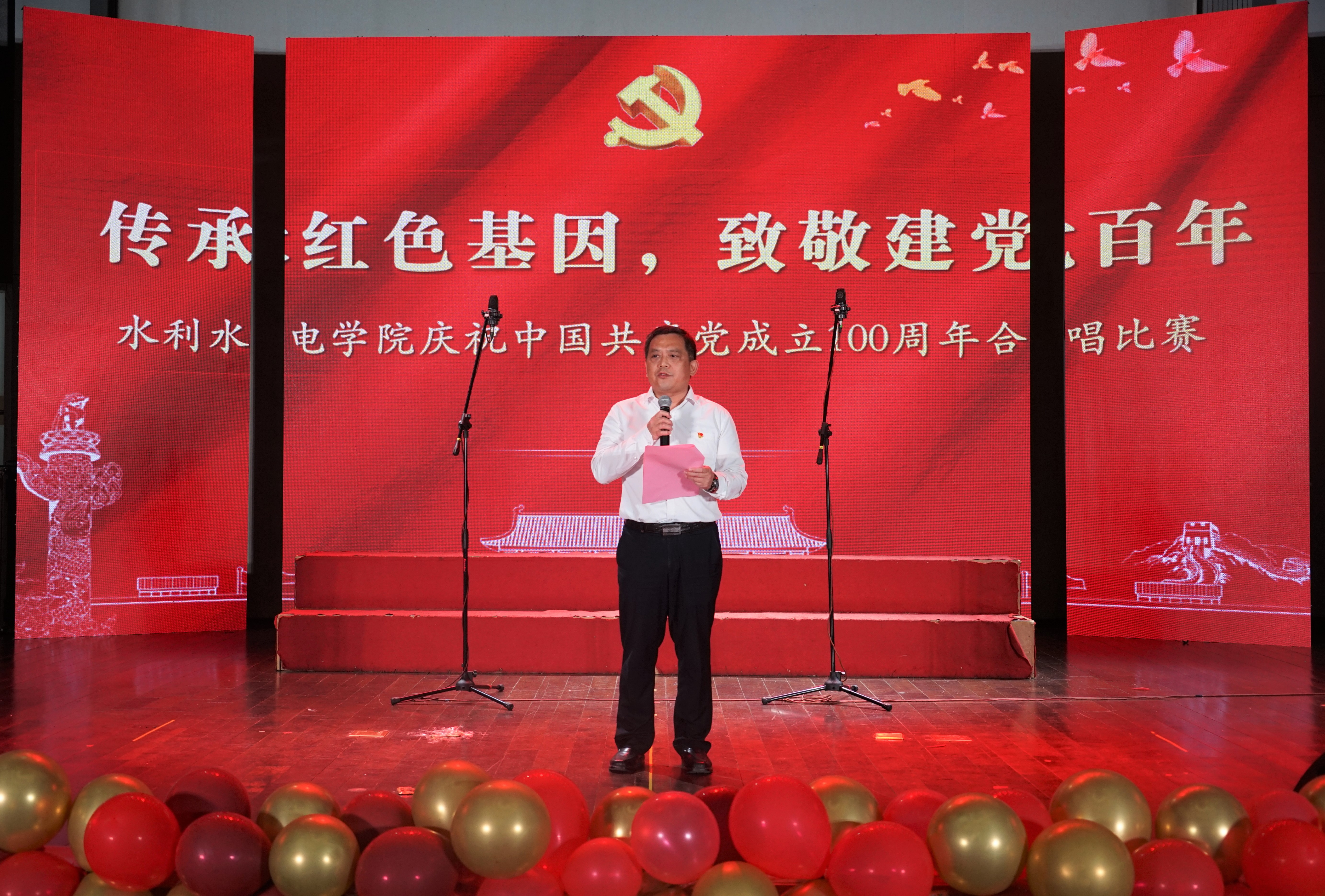 学院党委书记任旭华在致辞中通过回顾建党百年历程,向水电院的水之子们提出了殷切的期盼。他强调,学院始终坚持以习近平新时代中国特色社会主义思想为指导,牢记“为党育人,为国育才”的初心使命,着力培养德智体美劳全面发展的社会主义建设者和接班人。任书记号召全体水电学子,也对在座的同学提出了三点要求。一要有远大的理想与抱负,常怀拳拳报国的赤子心。二要勤奋学习,脚踏实地,随时准备着为党和人民奉献自己的青春力量。脚踏实地,随时准备着为党和人民奉献自己的青春力量。三要以饱满的热情和嘹亮的歌声,唱响时代的主旋律,致敬中国共产党百年华诞。