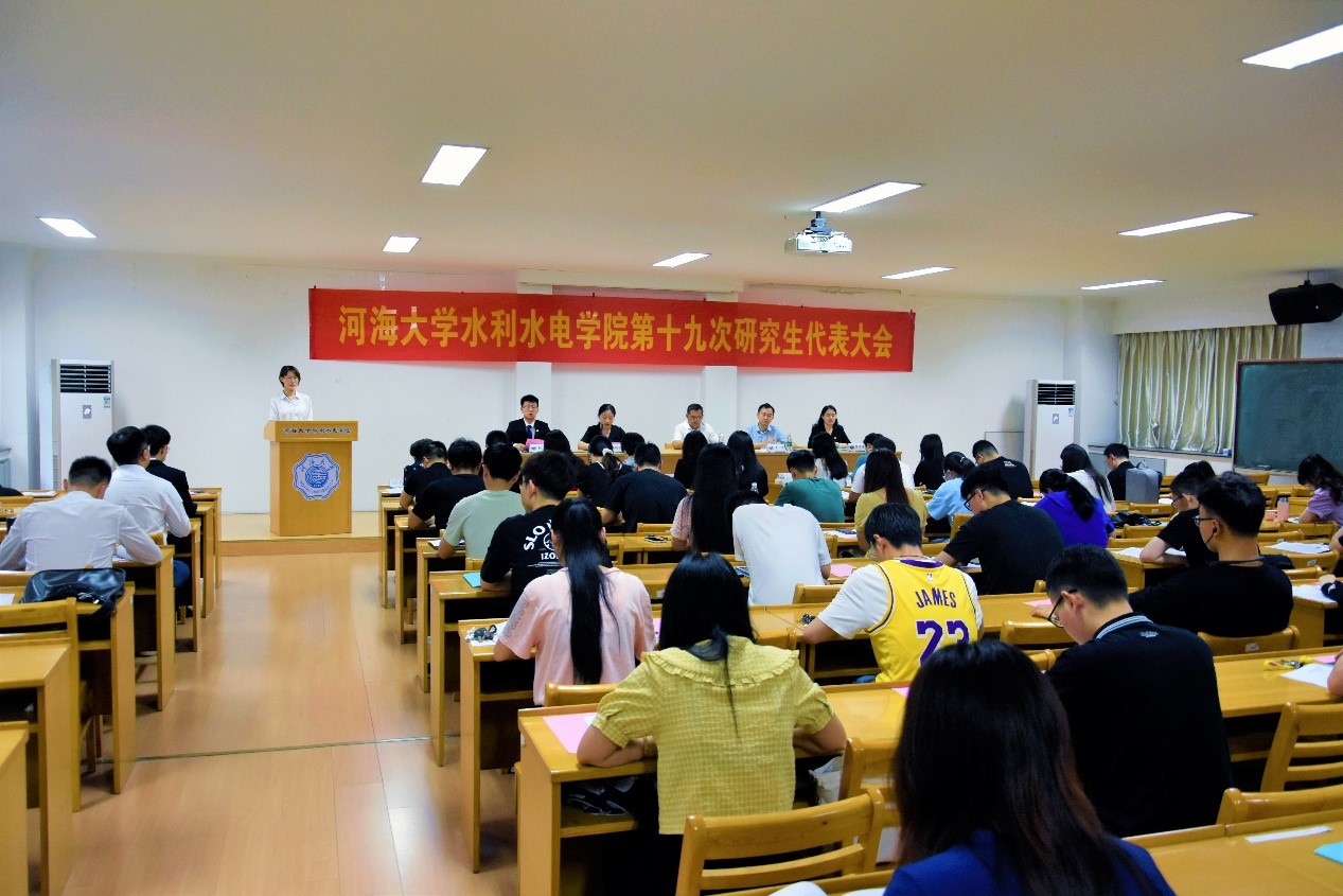 6月3日,hg8868体育官网hg8868体育官网隆重召开第十九次研究生代表大会。院党委书记任旭华、校研究生会执行主席赵嘉雯出席会议并讲话,党委副书记王方,团委书记笪步源,组织员胡瑞媛,研究生教学秘书周昶,研究生辅导员赵志涵、陈思思,本科生辅导员姜帆,水文学院、港航学院、环境学院等兄弟学院研究生会负责人及我院研究生会代表60余人出席大会。