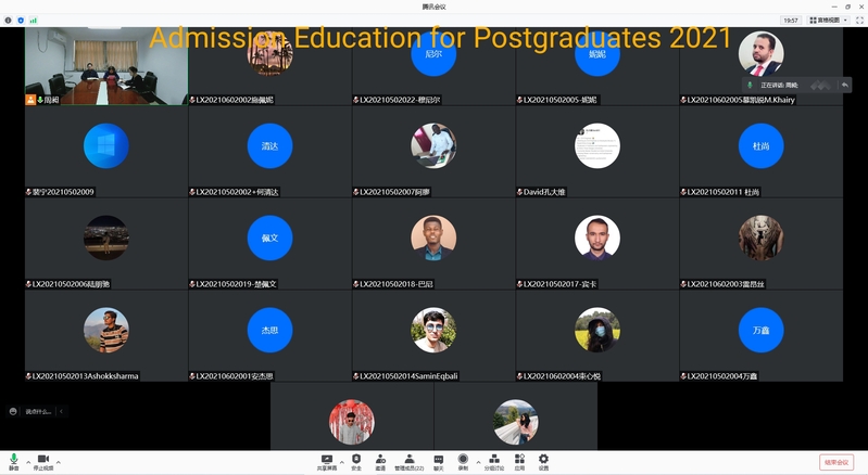 10月28日上午,hg8868体育官网在线开展2021级留学研究生新生入学教育。学院副院长方国华、国际合作与交流办公室主任周领、研究生教学秘书周昶参加活动。