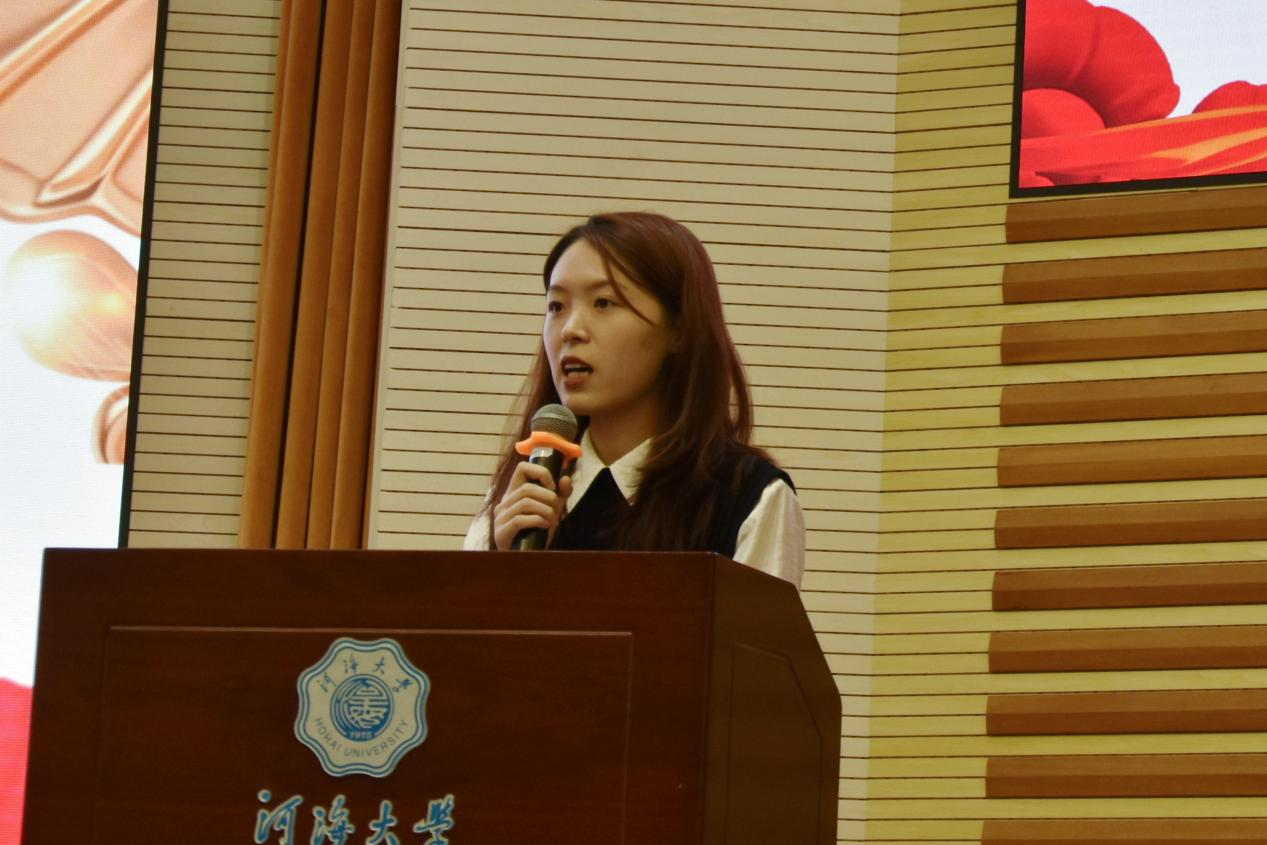 在校生代表、2021年钱正英奖学金获得者,2018级博士研究生王珍妮同学发言。她结合亲身经历鼓励新同学要创新思维、挖掘科研深度,开拓视野、拓宽科研广度,瞄准行业空白,面向科技前沿和国家重大需求,将自己个人所学融入国家发展所需,承担起作为水利人的责任。