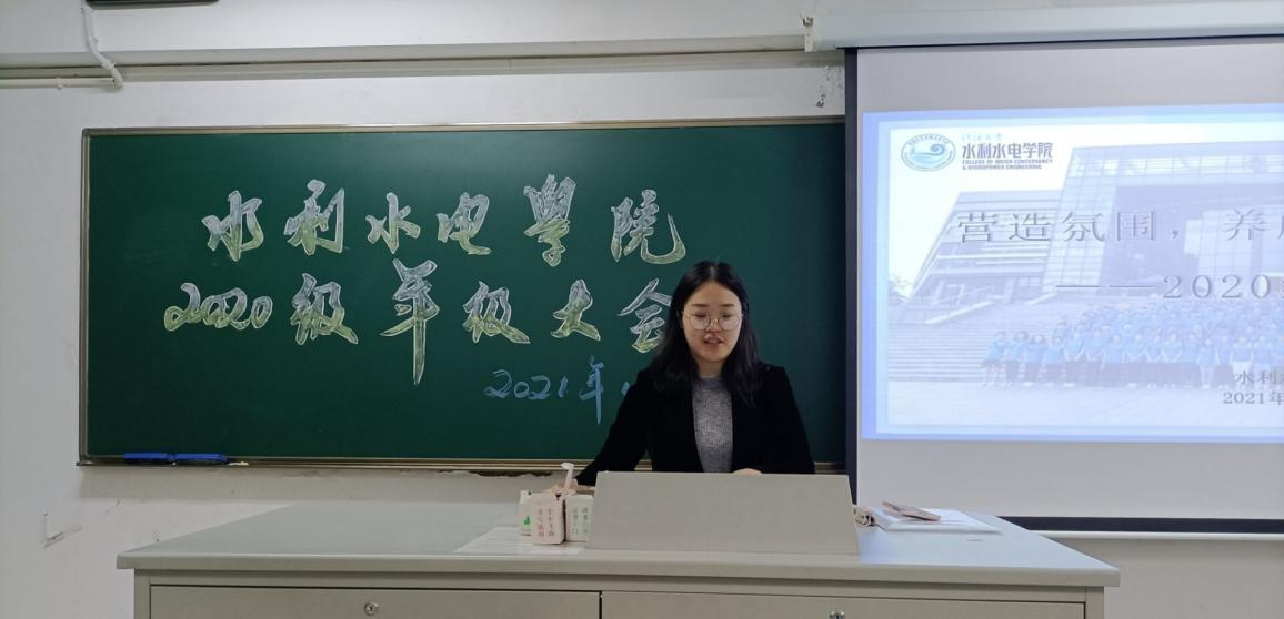 10月26日,为加强年级学风建设,营造期中备考良好学习氛围,提高学生安全意识,我院2020级召开期中考试动员大会暨安全教育讲座。分析大一学年成绩情况,科普防范电信诈骗、注意宿舍隐患等安全教育。会议在致高B401开展,2020级辅导员笪步源主持,2020级全体本科生参加。