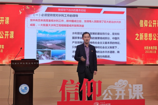 11月16日,hg8868体育官网举行“百年治水路中的传承与使命”信仰公开课之新思想公开课。课程以“党领导中国水利事业的历史经验与启示”为主题,院党委书记娄健、党委副书记王方和团委书记笪步源主讲,2019级硕士生金子又主持。本次新思想公开课为校级“信仰公开课”示范课。