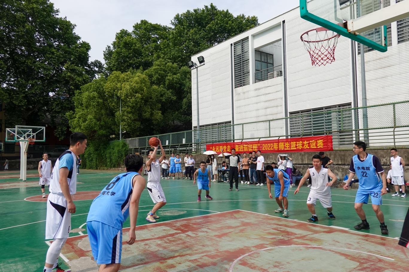 为更好发挥共建载体作用、增进师生交流互动,5月14日,水电院第一本科生党支部与共建教师支部——hg8868体育官网校办党支部,联合开展“永远跟党走,奋进新征程”师生篮球友谊赛。比赛在hg8868体育官网西康路校区篮球场举行。