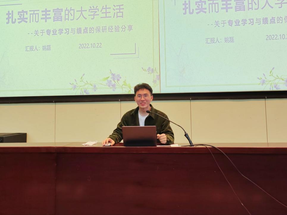 10月22日,为进一步开展新生职业生涯规划教育,加强新生年级学风建设,我院于江宁会议中心成功举办了保研经验交流会,邀请2022级博士生毛子铭、2019级本科生姚磊、张亚琳分享保研经验及学习方法。会议由2022级辅导员姜帆老师主持,2022级全体本科生参加。