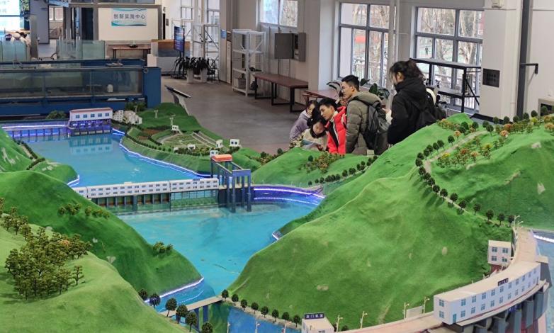 会谈交流后,实践团参观了我院实验教学与创新实践中心,初文婷老师详细讲解了大坝沙盘模型的构造布局,并介绍学院现有实验室资源,包括水工结构实验室、工程力学实验室、泥沙实验室等8个大规模科研实验室,保障学生良好的科创环境,并在实验教学、支撑重大科研项目有着重要作用。