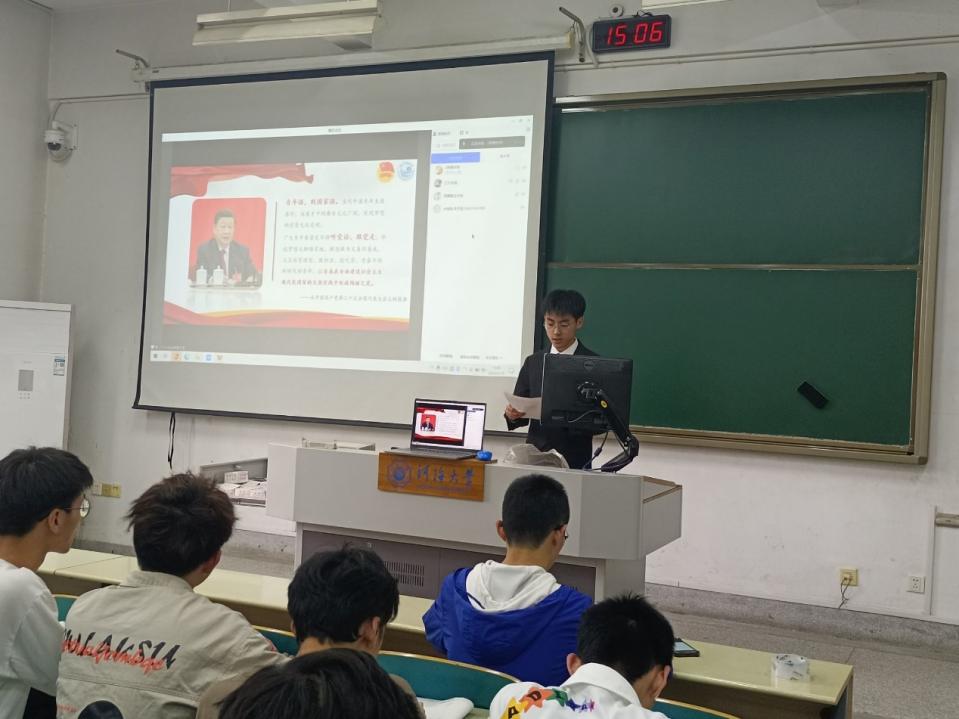 杨孙浩同学进行“团结奋斗新征程,保守秘密靠大家”主题团课,全面介绍维护国家安全的重要性,以鲜明的案例、系统的阐述,带领大家树立维护国家安全的意识,分享关于保守秘密的建议,提醒同学们注意生活中的泄密陷阱,筑牢维护国家秘密安全的校园防线。