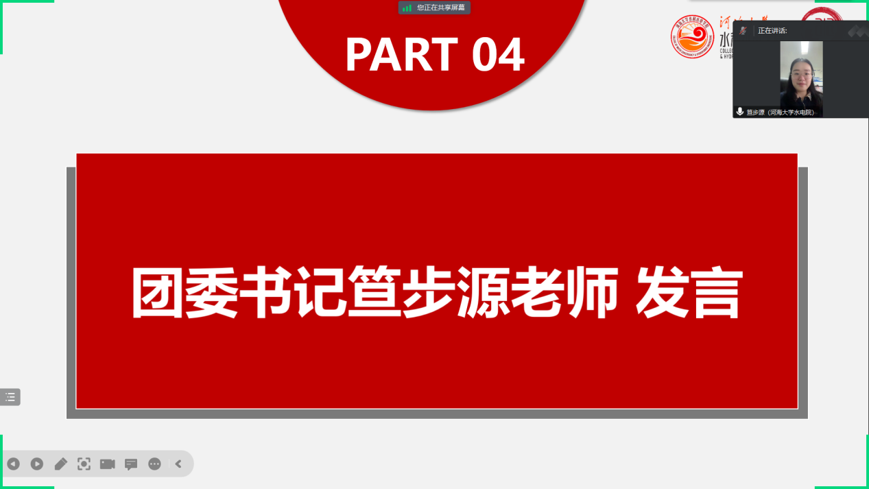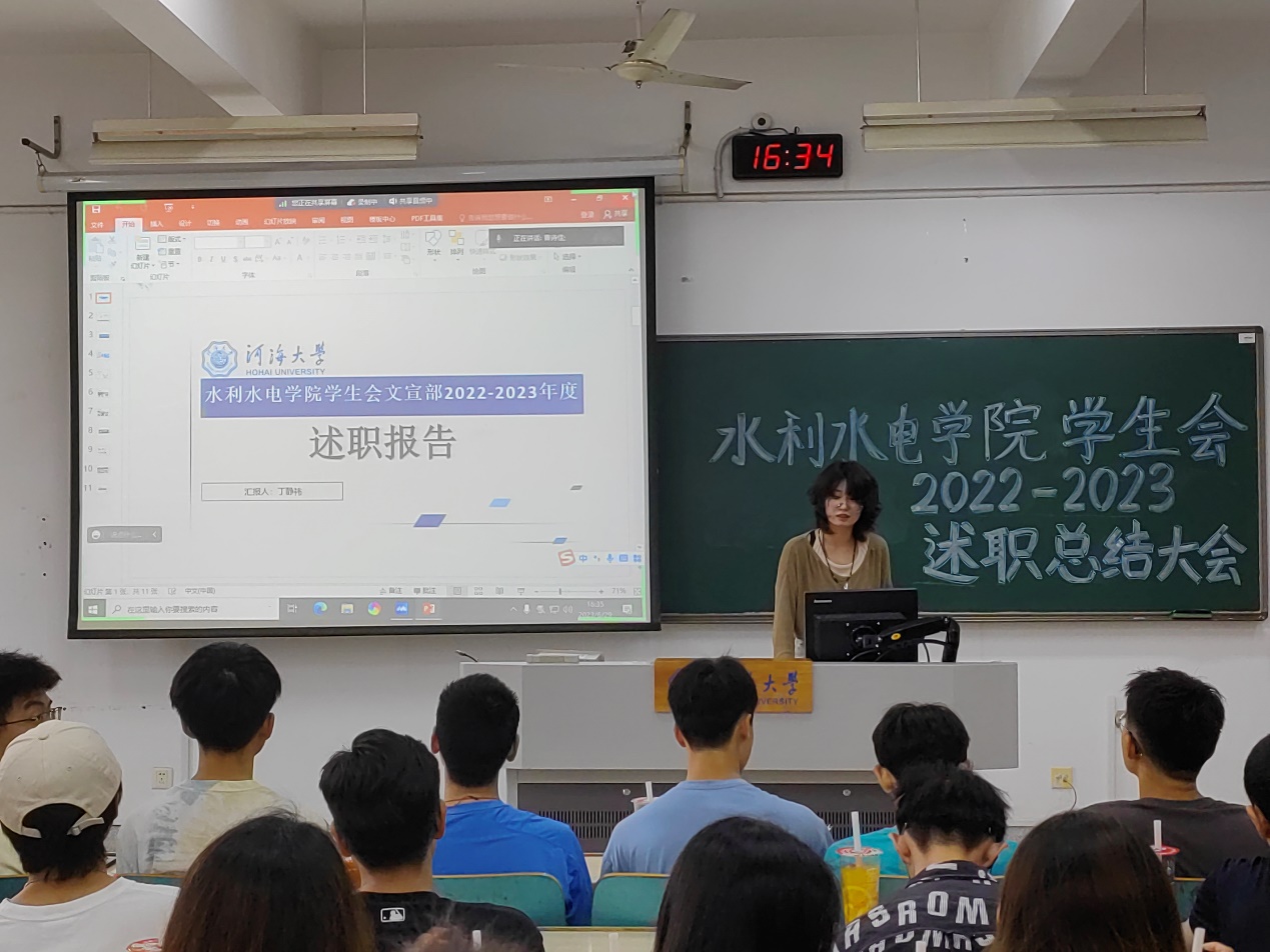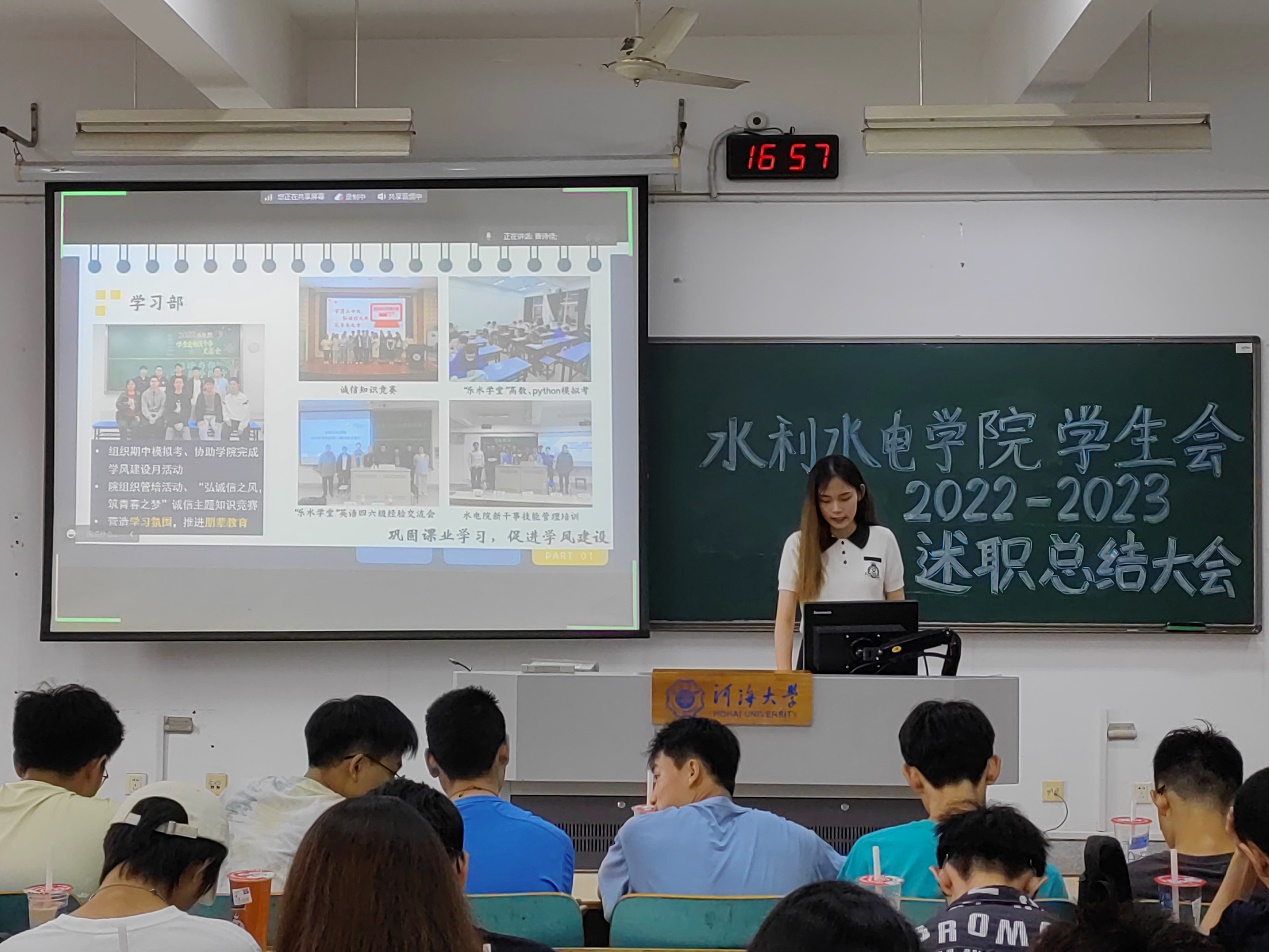 学习部徐祺皓同学介绍了学习部在“刻苦,严谨,求实,创新”的宗旨下开展“乐水学堂”模拟考和学习经验交流会,为水电学子们搭建了思想碰撞和学习交流的平台。