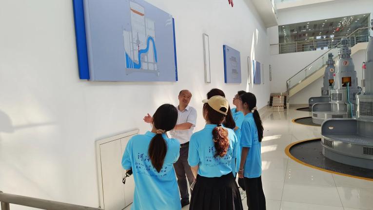 7月5日下午,调研团前往江都水利枢纽进行参观调研。相关负责人带领实践团成员参观水利枢纽装置的工作间,了解江都水利枢纽的工作流程并重温习近平总书记曾参观过的展览馆。