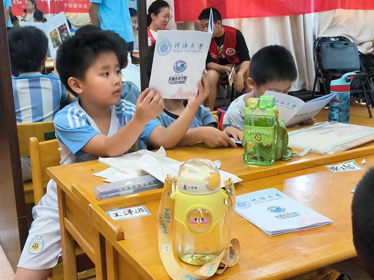 在志愿者们的带领下,小朋友们拿起手上的井冈山精神宣传册,边读边记。之后,由志愿者提问,小朋友们积极回答有关井冈山精神的提问,在对答中强化记忆、深化认识,展现了小朋友们对井冈山精神的探索与收获。