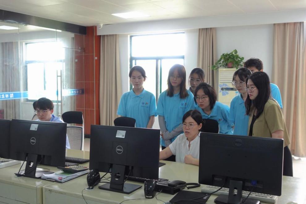 桥北污水处理厂厂长臧千里向大家详细介绍了公司的运营情况,工艺管理员侯保莲为团队成员详细讲解了污水处理流程,带领成员们参观了生产现场。现场机器轰鸣、水流涌动,工作人员按工艺流程为实践团进行了逐一讲解,沉砂池、生化池、二沉池、混凝沉淀池、反硝化滤池、消毒池等等,这一个个看似普通的池子,却承担着日处理20万吨污水的重任。