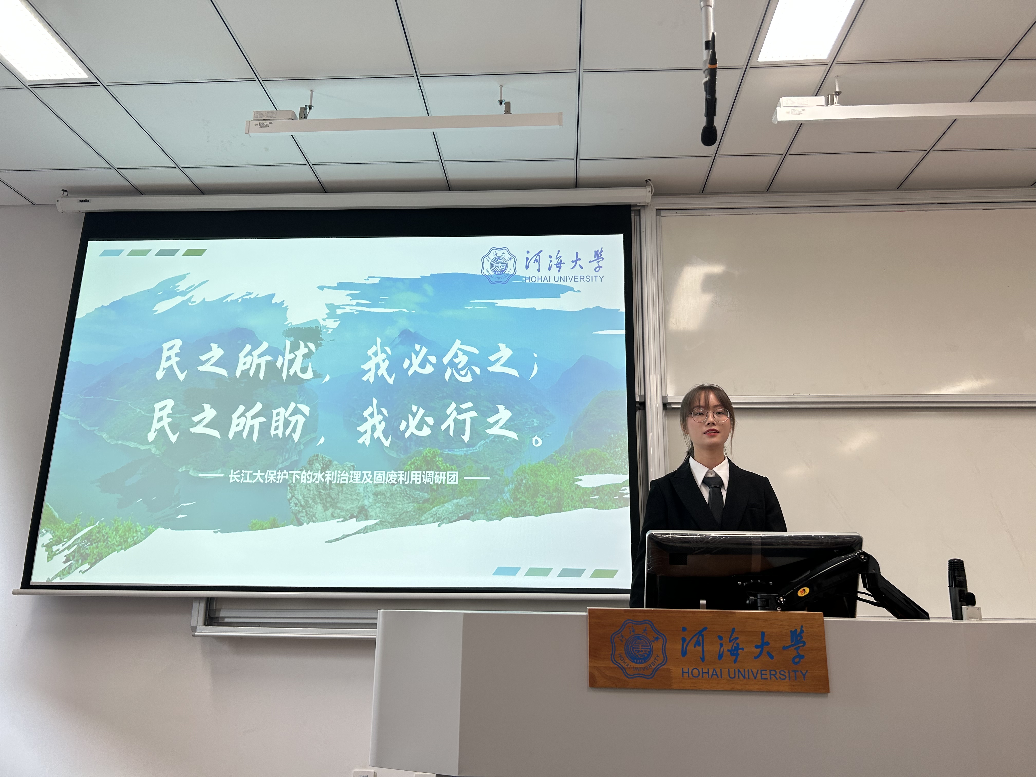 10支评优团队围绕暑期社会实践前分工准备、实践中的合作调研、实践后的成果影响等方面进行了详细地汇报,在国家水网建设、推动长江经济带发展、延续红色血脉、校友寻访、乡村振兴等多个方面完成了实践。团队代表在展示暑假社会实践成果的同时,也深刻阐述了此次实践的收获与感悟,坚定了水之子的前行方向。
