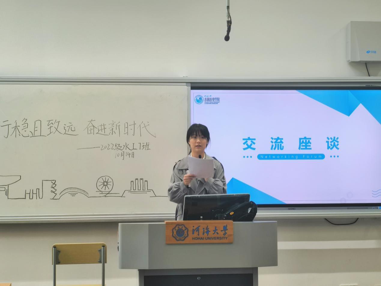 10月14日,我院2022级水工七班开展“行稳且致远,奔向新时代”主题班会。hg8868体育官网党委副书记戴媛媛出席班会,团支书唐伊主持班会,2022级水利水电工程7班全体同学参加。