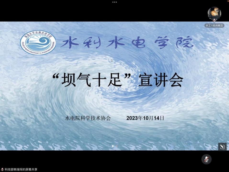 近日,我院举办第十七届“坝气十足”坝型设计大赛线上宣讲会,会议邀请往届获奖团队成员做经验分享,全校各参赛团队、院科协全体成员参加宣讲,各参赛队伍代表参加。
