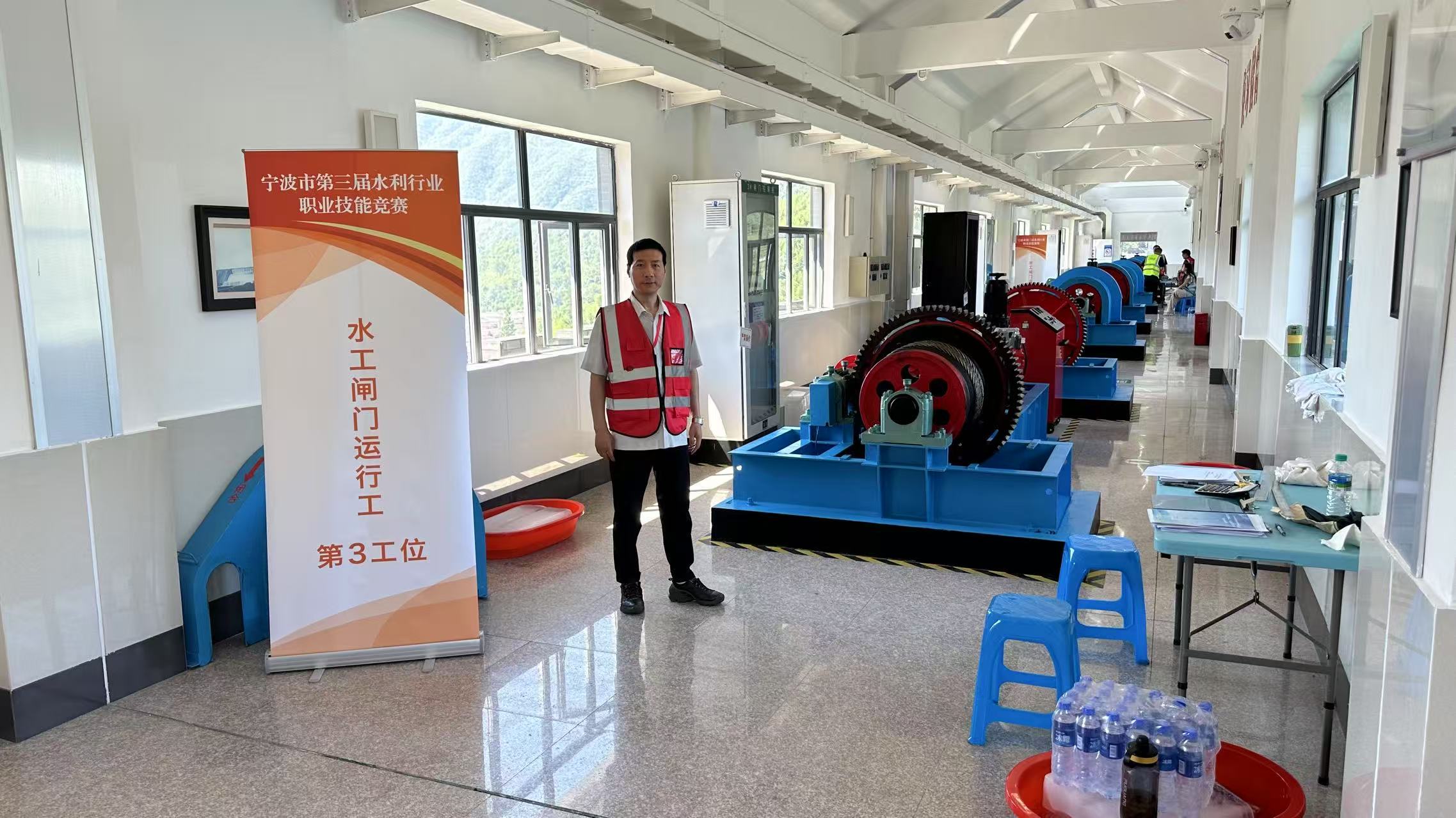 于宁波市皎口水库泄洪闸启闭机室担任水利行业职业技能竞赛裁判时